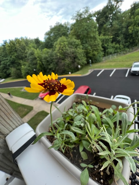 This morning, the first thing I did was check on the wildflowers on my balcony. They had managed to weather the storm just fine. The little sunflower was intact, and one of the buds had opened into a lovely blue flower.